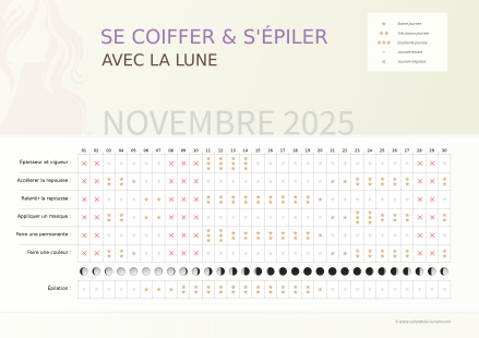 Calendrier pour se coiffer et s'épiler avec la lune en téléchargement gratuit.