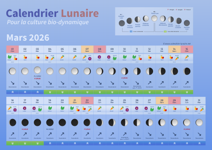 Le calendrier lunaire est aujourd'hui de plus en plus utilisé, notamment dans l'agriculture bio-dynamique, qui prône une agriculture plus respectueuse pour l'environnement, sans pour autant négliger les rendements.