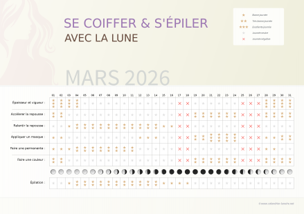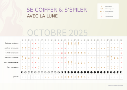 Pour des cheveux épais et vigoureux, ou encore pour accélérer ou ralentir la repousse, il convient de se couper les pointes des cheveux pendant les périodes indiquées afin d'obtenir l'effet désiré.